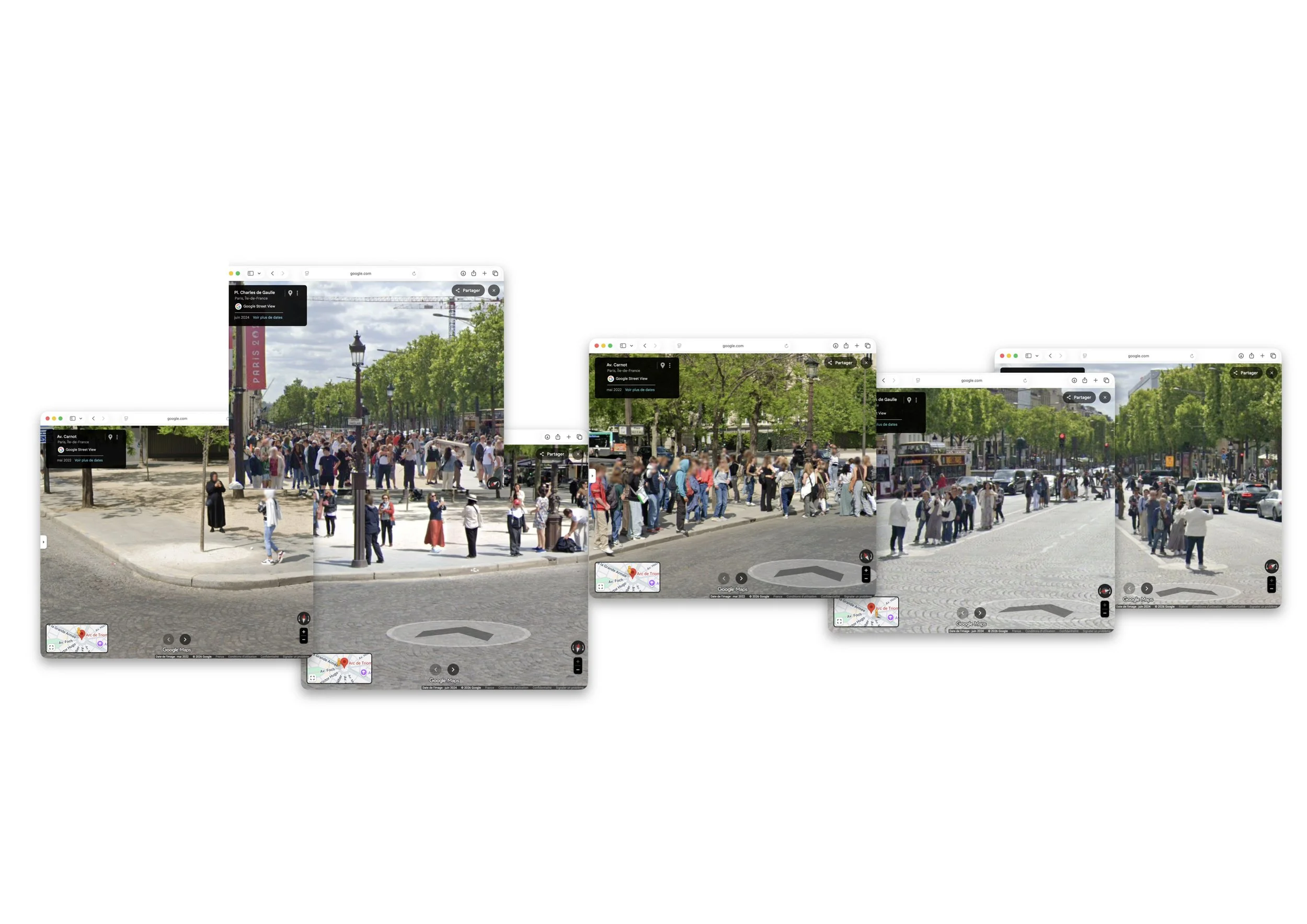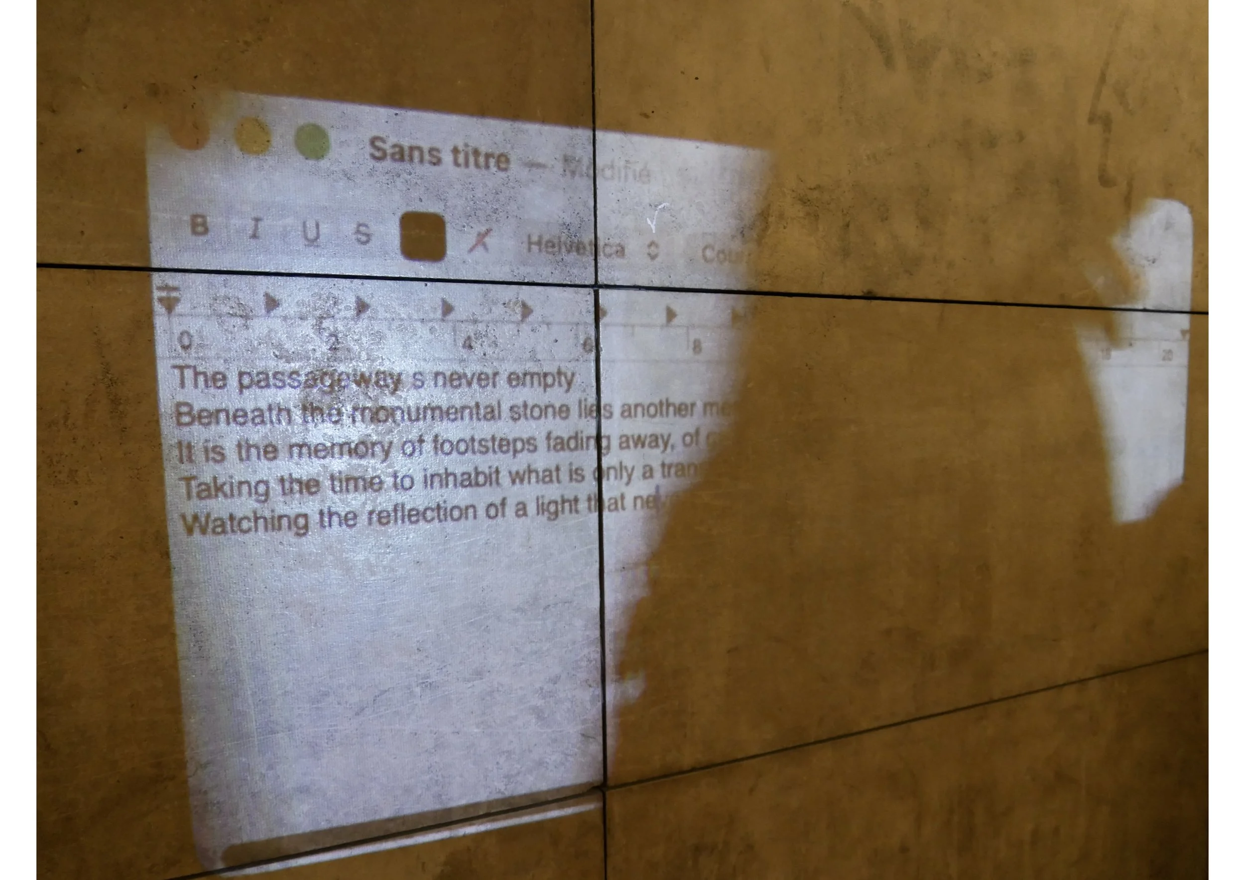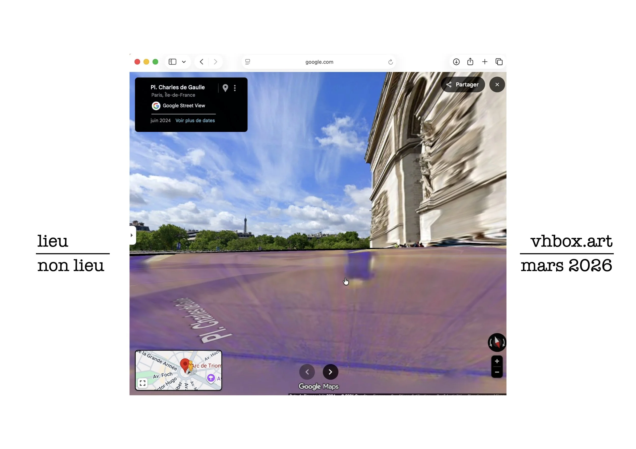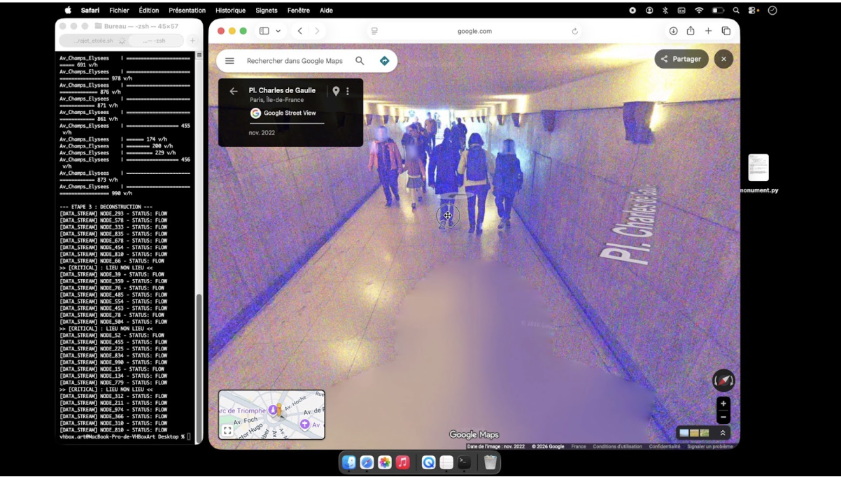 installation à la place de l’étoile, passage du souvenir, distribuant la série photographiques lieu non lieu